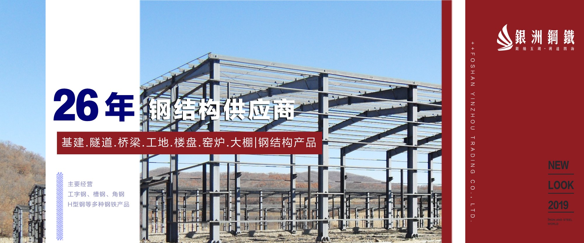 佛山市銀洲貿易有限公司于1997年創立,位于全國最大的鋼材批發物流市場--廣東樂從,經過20多年的發展,銀洲現已發展成華南地區大規模的型材銷售商,設有大型商場式門市及室內倉庫面積達2萬平方米,是一家從事鋼鐵貿易、加工、配送的大型民營企業。銀洲主要經營工字鋼、槽鋼、角鋼、H型鋼等多種鋼鐵產品現貨。